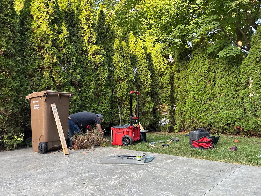 A clean, glare-controlled well light installation that reused a working transformer, improved visibility near the driveway, and created a visual destination toward the backyard.