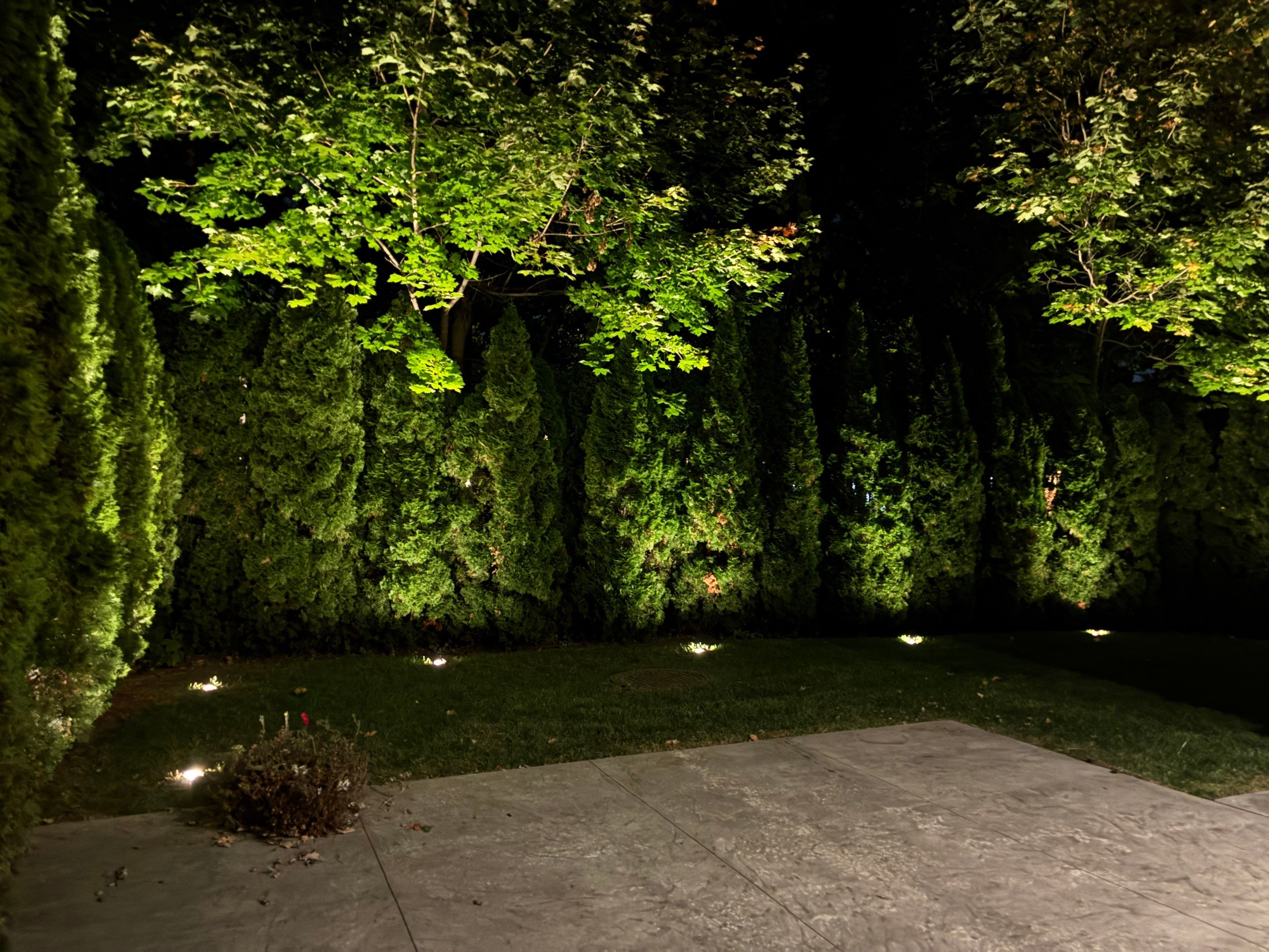A small set of landscape uplights had been installed previously, but the lighting did not guide the eye through the space and left key areas underlit. The client wanted a cleaner, more intentional nighttime look without replacing equipment that was still working.